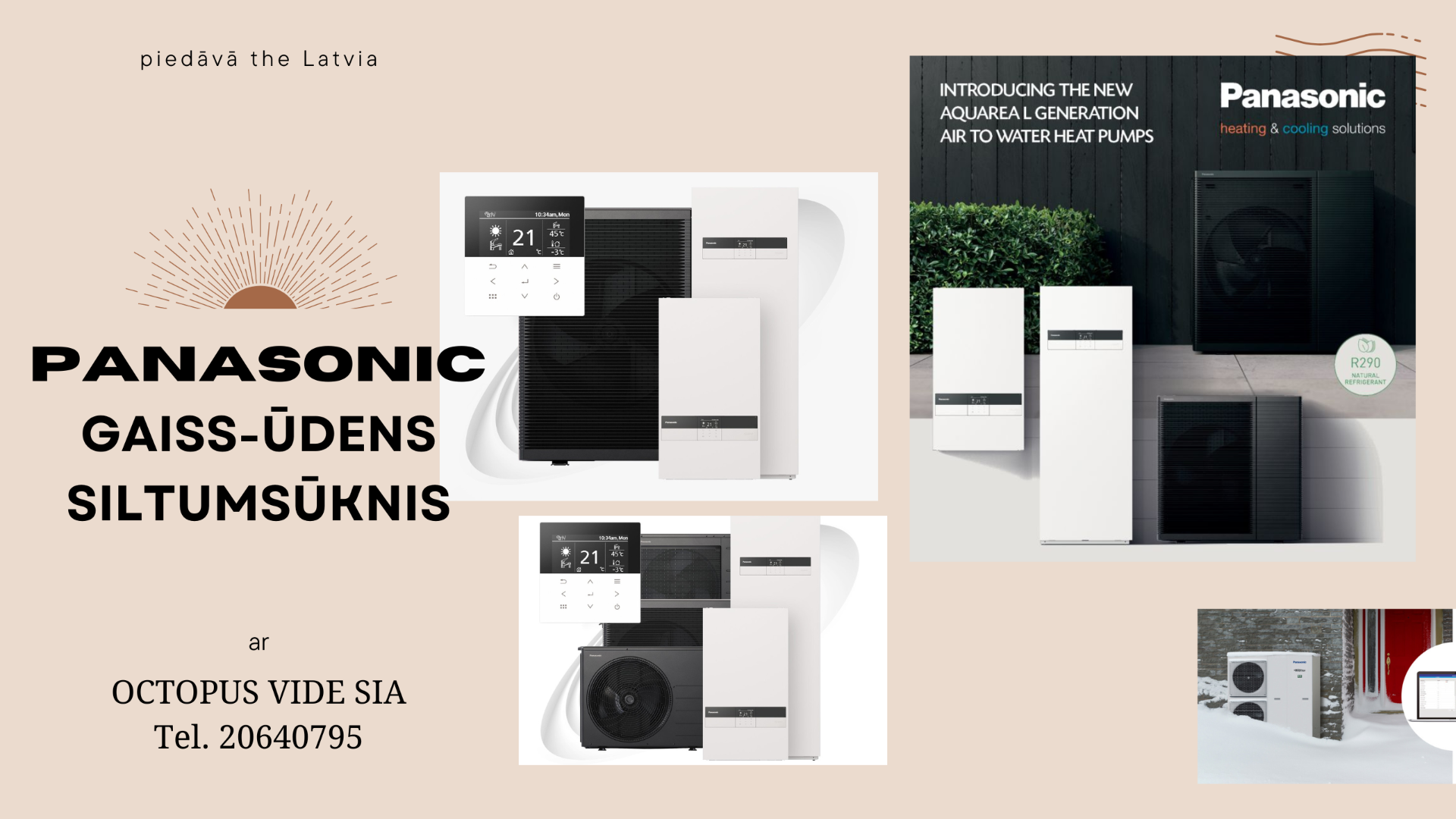 Pamatojoties uz siltumsūkņu tehnoloģiju no gaisa uz ūdens, šī sistēma ir ļoti efektīva un videi draudzīga. Tā uztver siltuma enerģiju no apkārtējā gaisa un pārnes to, lai uzsildītu ūdeni, kas nepieciešams jūsu mājas apsildei, gan karstā ūdens pagatavošanai un pat mājas atdzesēšanai, ja to vēlaties. Tādā veidā līdz pat 80% no nepieciešamās siltumenerģijas tiek ņemts no apkārtējās vides - pat ļoti zemā temperatūrā (līdz - 28* grādiem). Viens no mūsu risinājumiem ir iekštelpu apkures un dzesēšanas sistēma, kas izmanto siltumsūkņu tehnoloģiju. Tāpēc mēs esam apņēmušies piedāvāt JUMS risinājumus, kas nodrošina komfortu un palīdz mums pildīt savu atbildību par vidi.